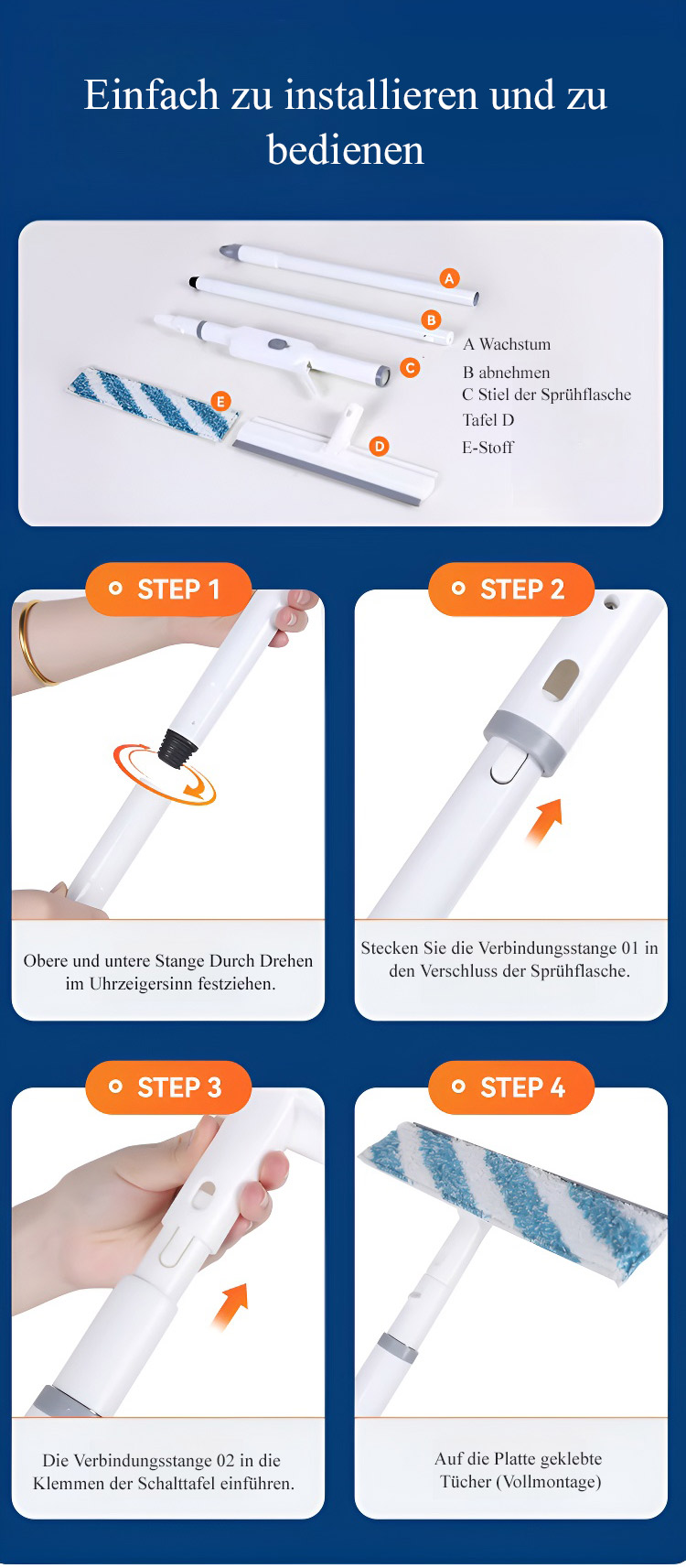[Sprühschäben drei in einem] Doppelseitiger Sprühschäber für Teleskopfenster