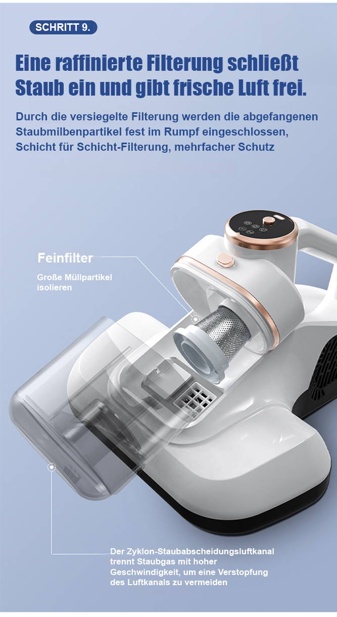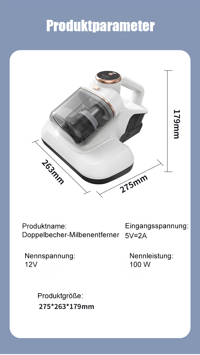Doppelbecher-Staubsauger mit UV-Sterilisation zur Milbenentfernung