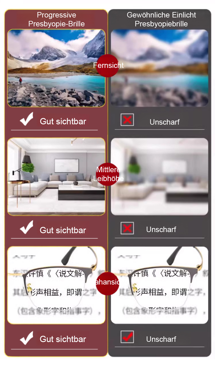 Mit diesem Produkt sind teure Sehtests überflüssig, und Sie müssen bei Änderungen der Sehstärke keine neuen Brillen kaufen! Eine Brille für ein ganzes Leben!
