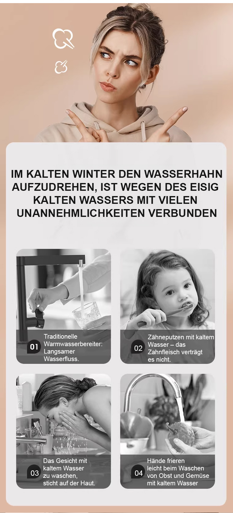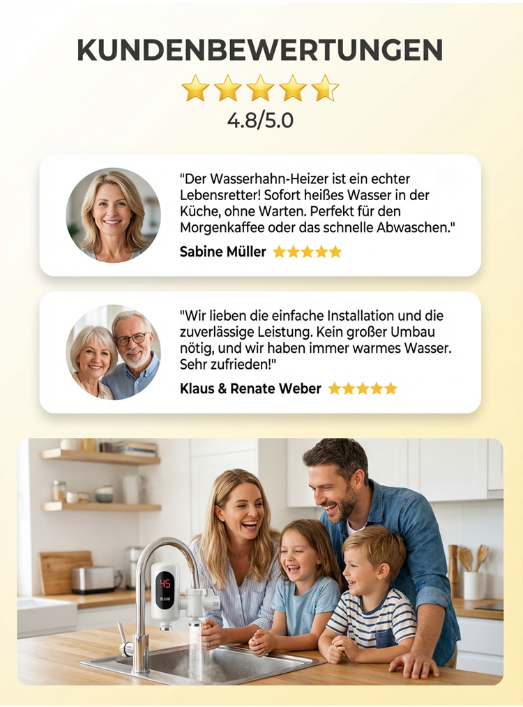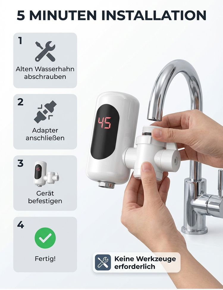 Sofort-Heißwasserhahn ohne Installation