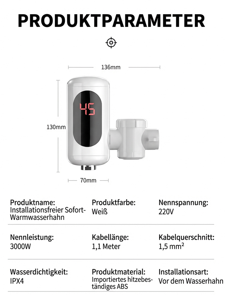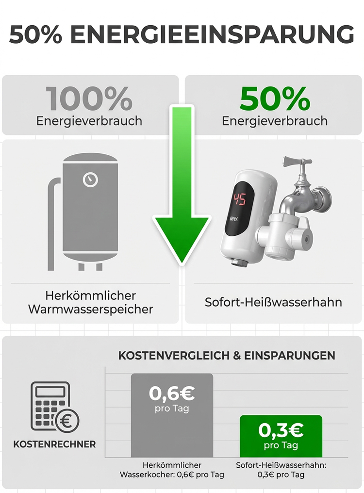 In nur 3 Sekunden heißes Wasser, kein Vorheizen erforderlich, und das digitale Display ermöglicht eine Echtzeit-Temperaturkontrolle!