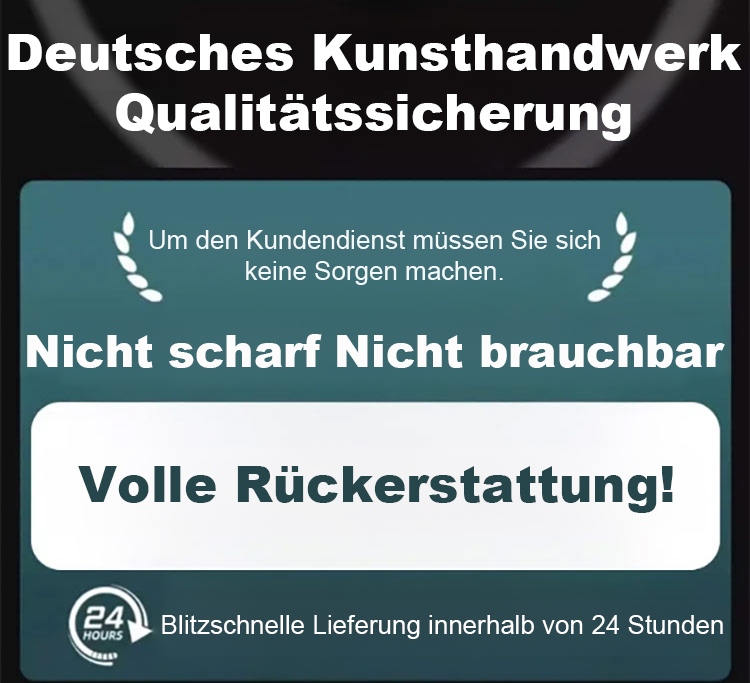 Bricht und schlägt sich nicht einmal nach 50 Jahren um. Jedes Messer wird 72 mal geschmiedet, auch nach 10.000 Schnitten von fleischigem Fleisch mit Knochen schlägt es sich nicht um – spart Ihnen Tausende von Euro!