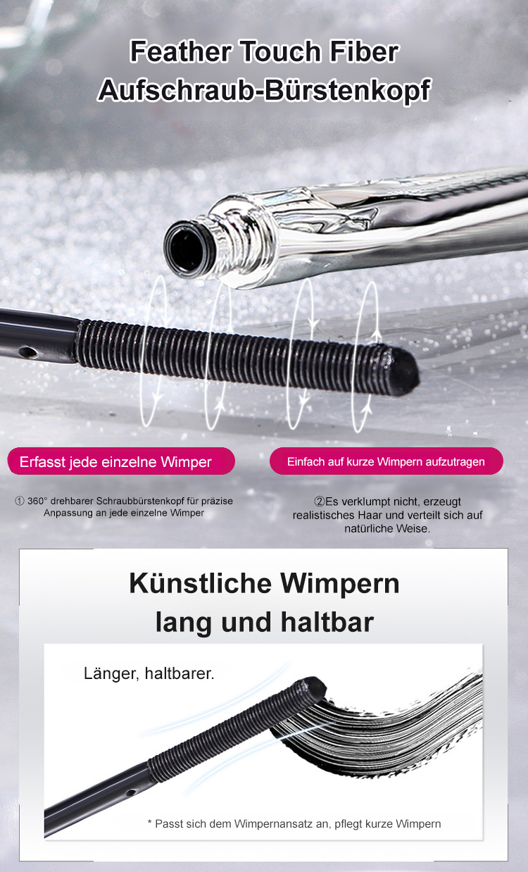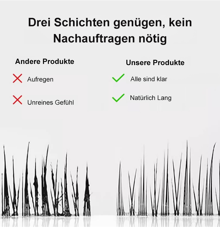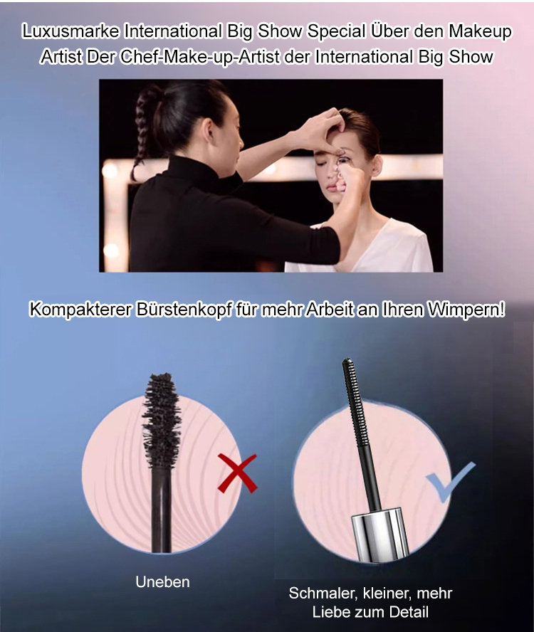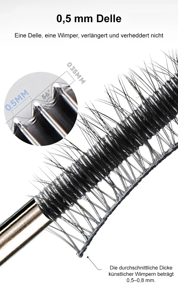 Keine Schminktechniken erforderlich, keine Wimpernzange nötig. Einfach nur leicht auftragen, und in nur 3 Sekunden werden Ihre Wimpern um das 1,5-fache verlängert – federleicht und perfekt getrennt!