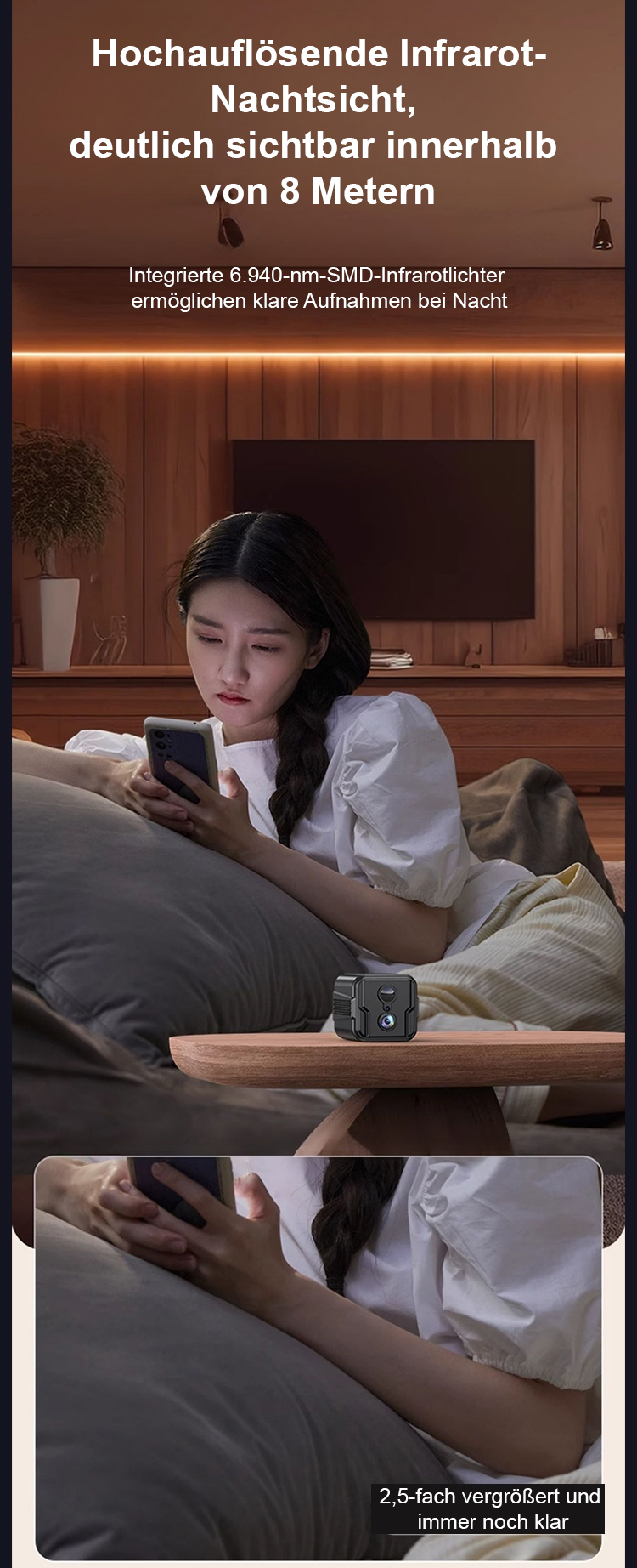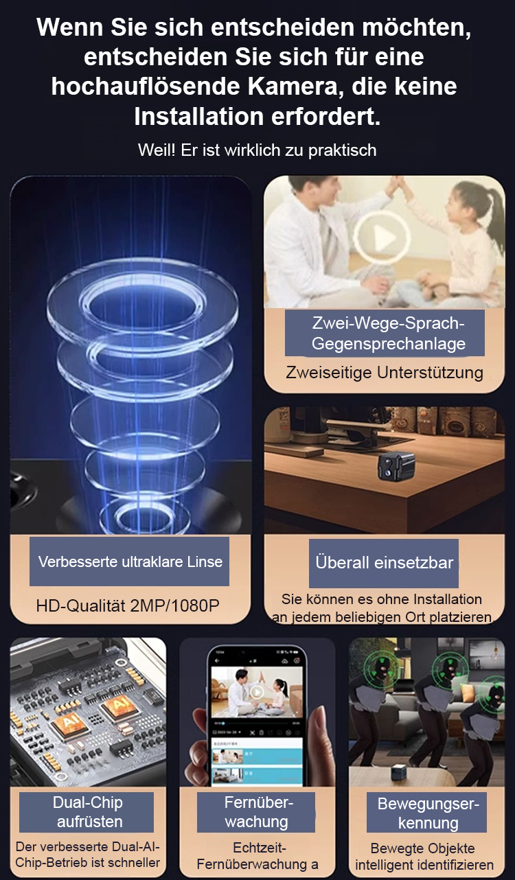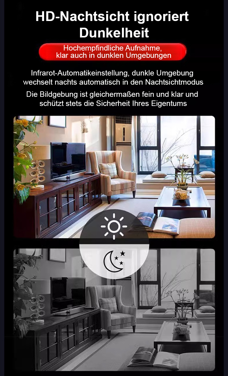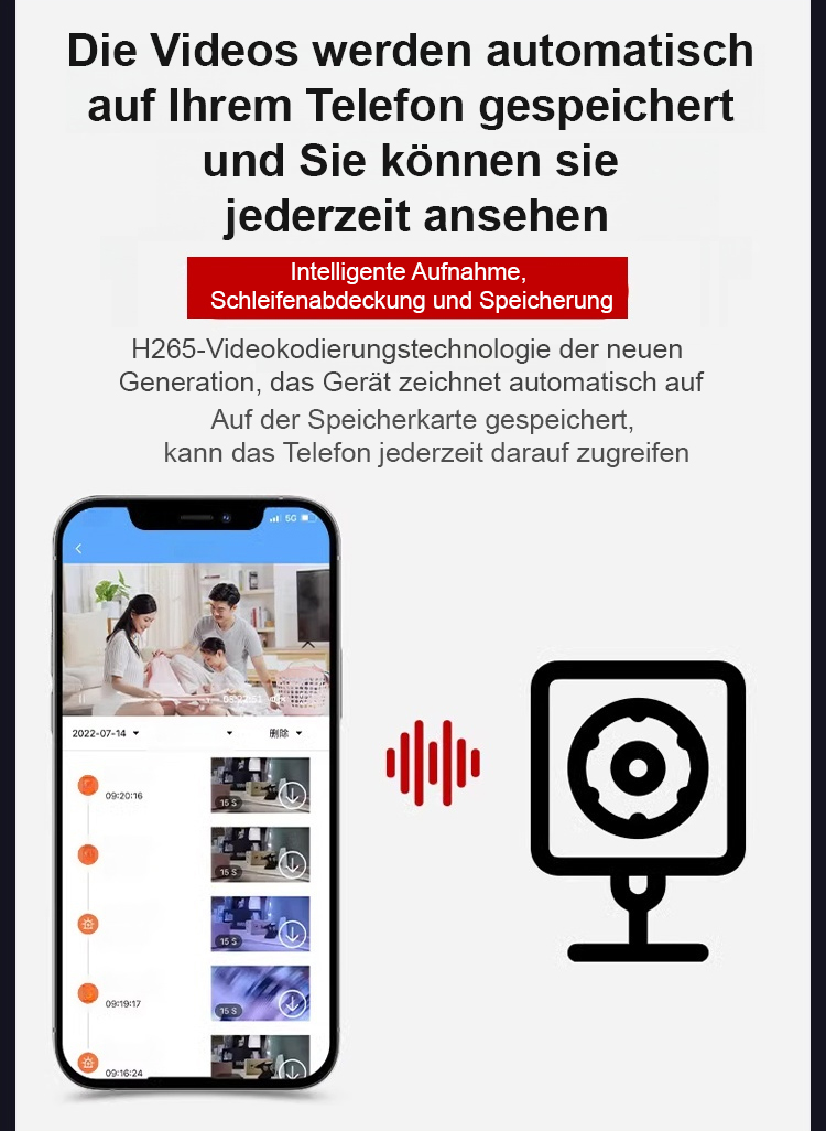 Keine Netzverbindung erforderlich, keine Verkabelung nötig, lebenslang kostenlose Nutzung, und Daten gehen niemals verloren. Überwachen Sie jederzeit und überall 24-Stunden-HD-Live-Überwachung über Ihr Handy!