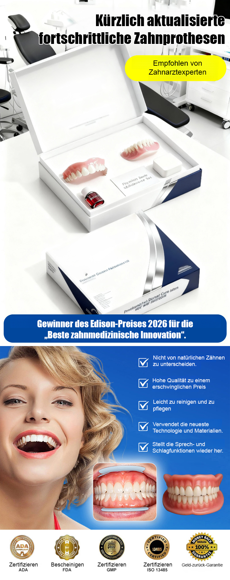 Premium 3D-Zahnblende | Perfekter Sitz in 3 Minuten | Ohne Kleber oder Zahnarzt ✨